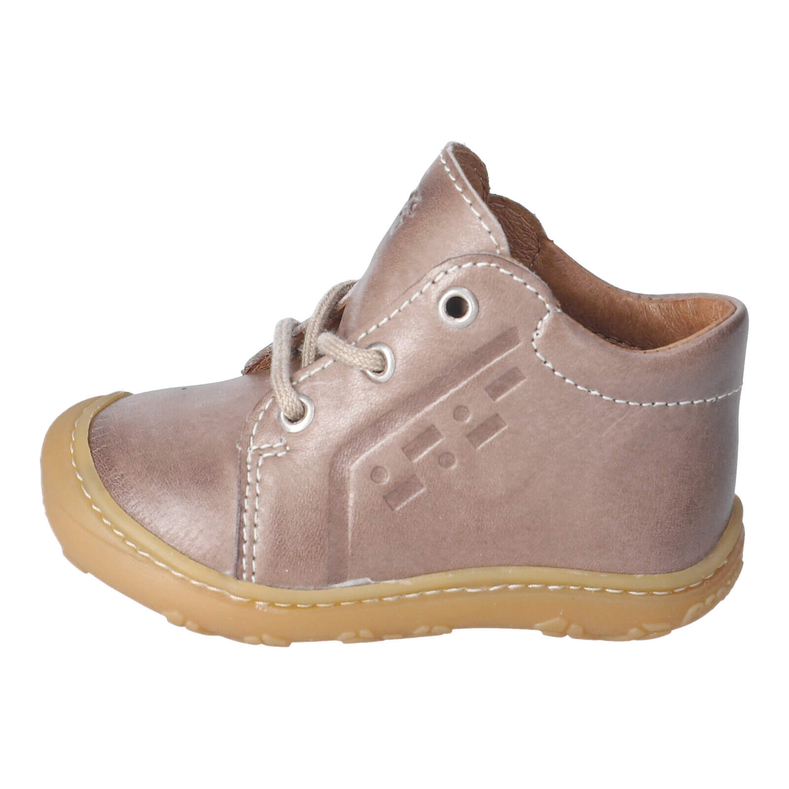 Schnürstiefel sollten gut sitzen, aber auch genug Platz bieten, damit die Füße Deines Kindes sich bewegen können. Zwischen den Zehen und der Schuhspitze sollte etwa eine Daumenbreite Platz sein. Probiere die Stiefel am besten mit dicken Socken an, besonders im Winter.